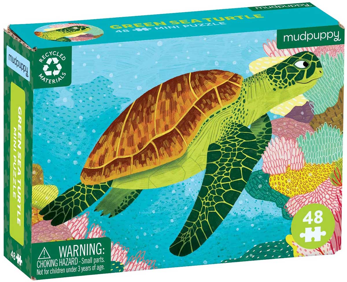 A two-sided insert includes a larger image of the puzzle and fun facts about the Green Sea Turtle!